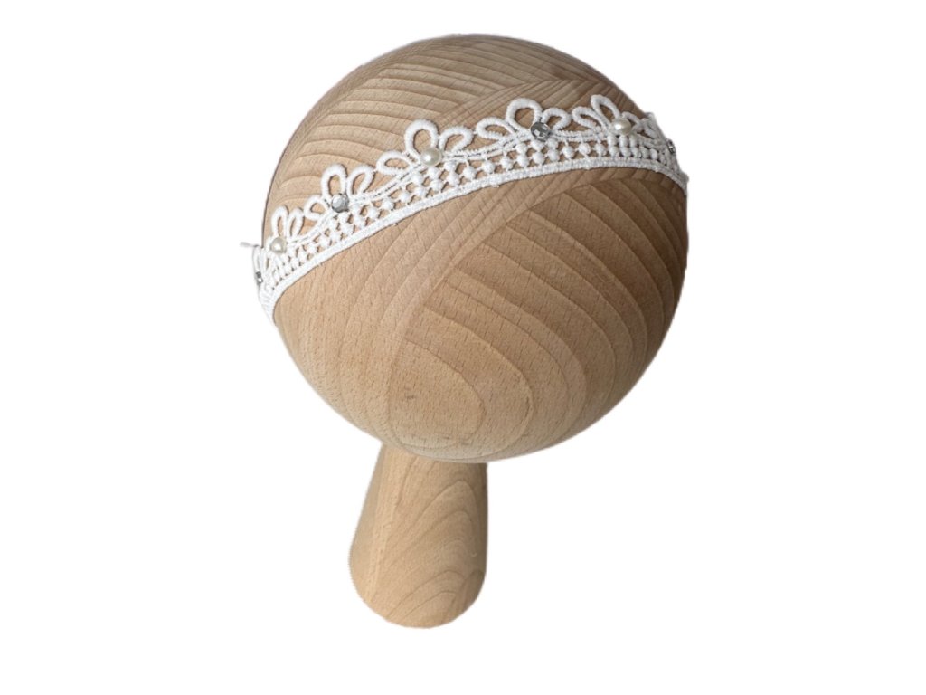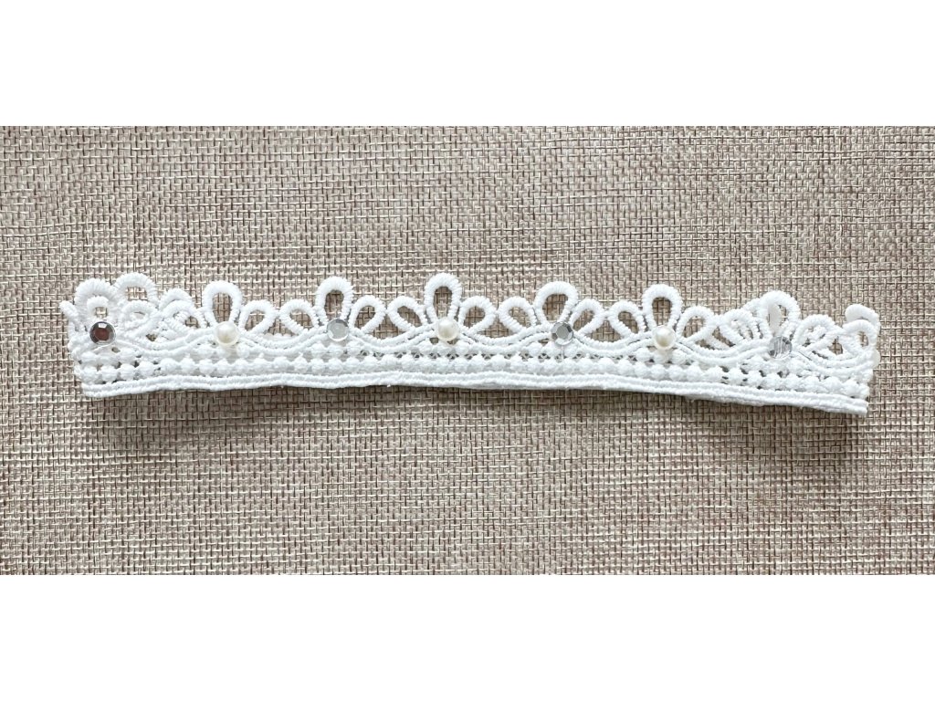 Bezotlaková ozdobná krajková čelenka - korunka s kamienkami a perličkami