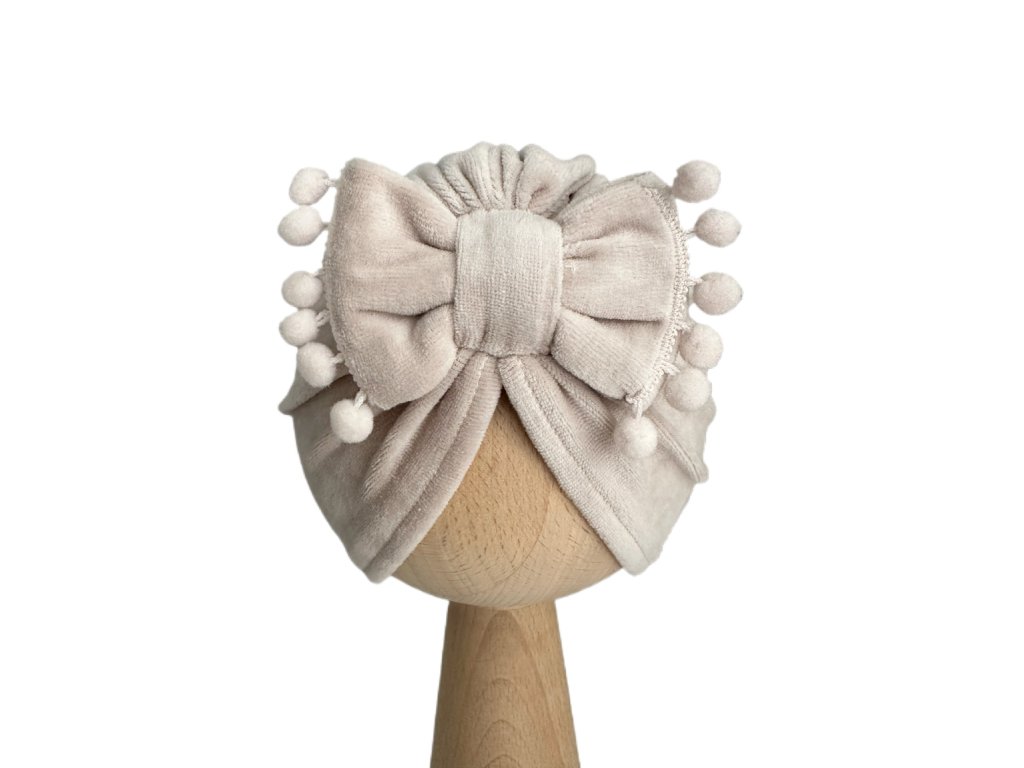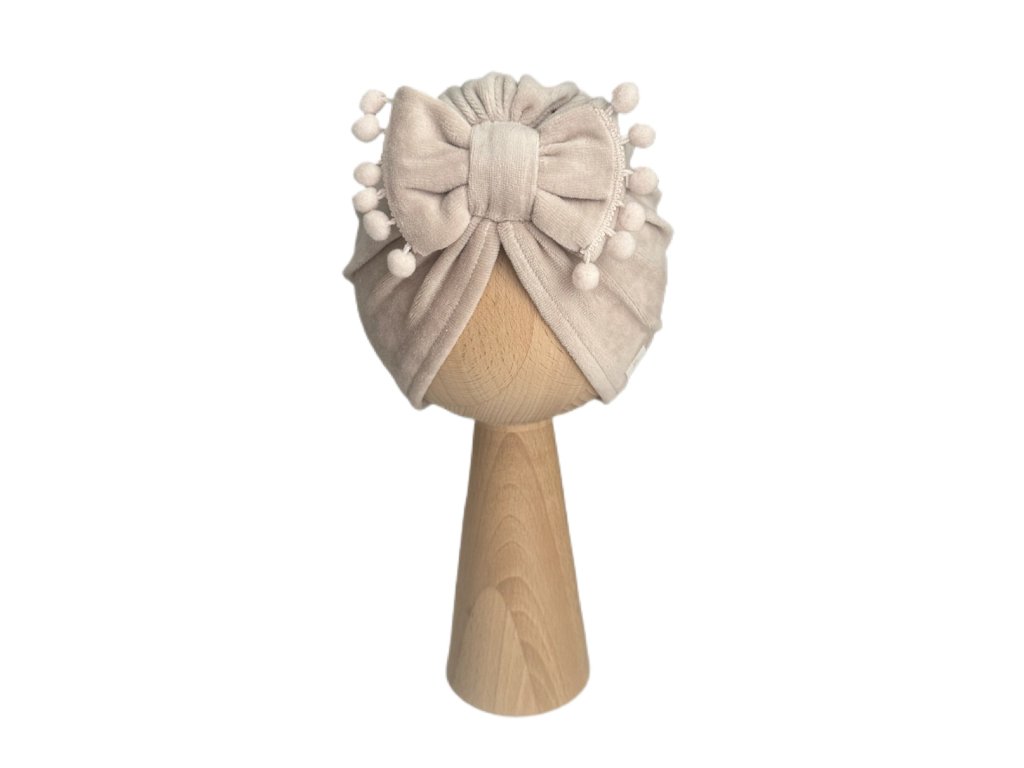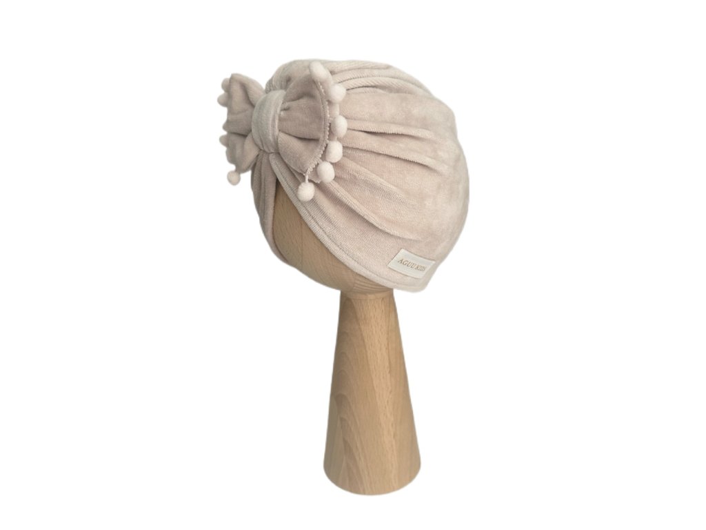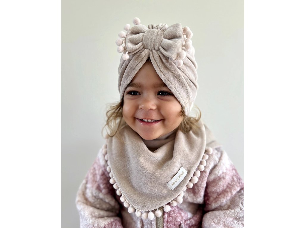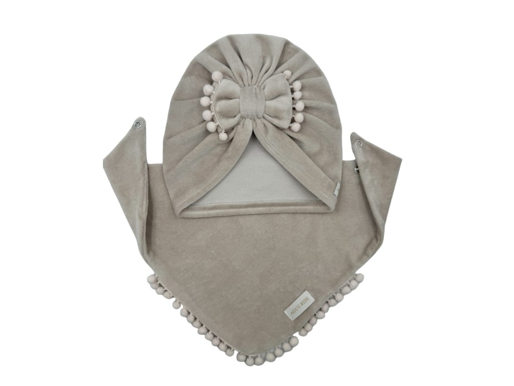 Jesenný set turban s nákrčníkom velúr jemná piesková