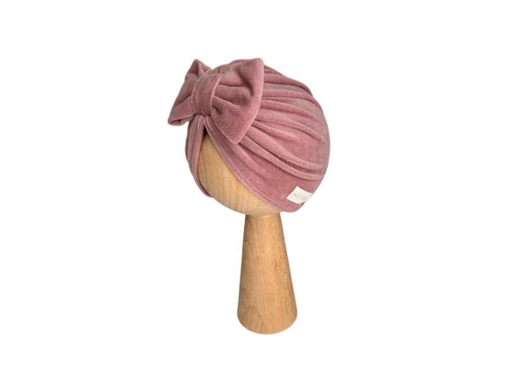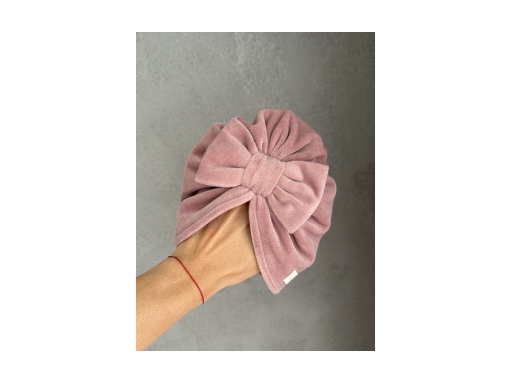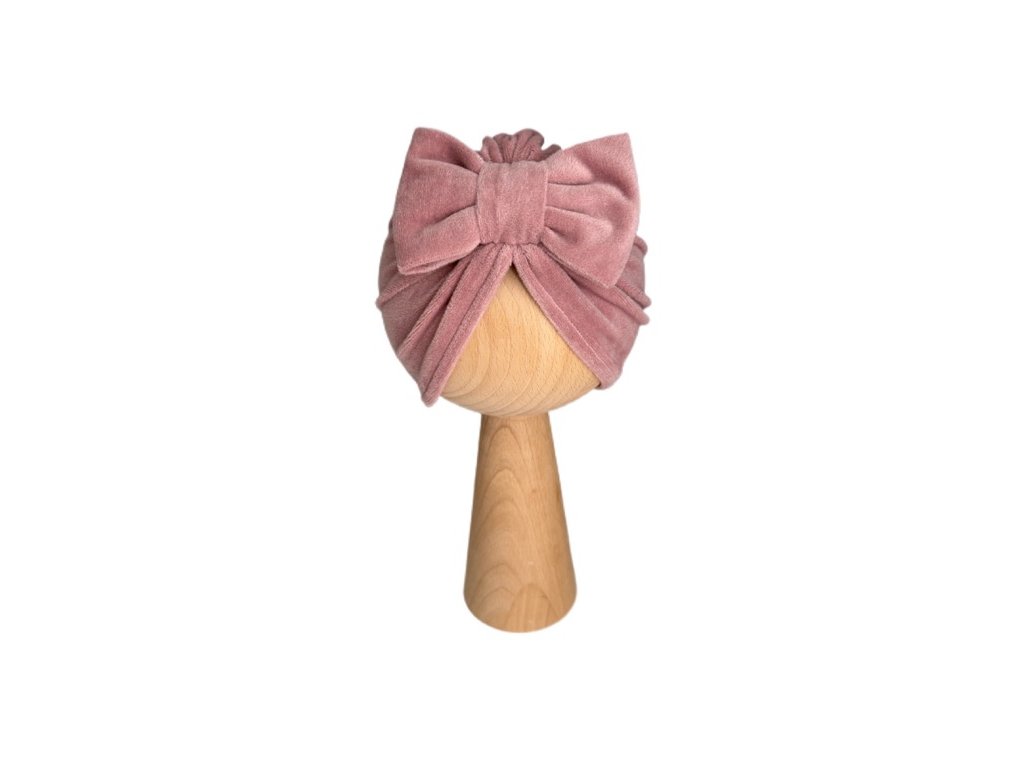 Jesenný turban zamat s mašličkou ružový