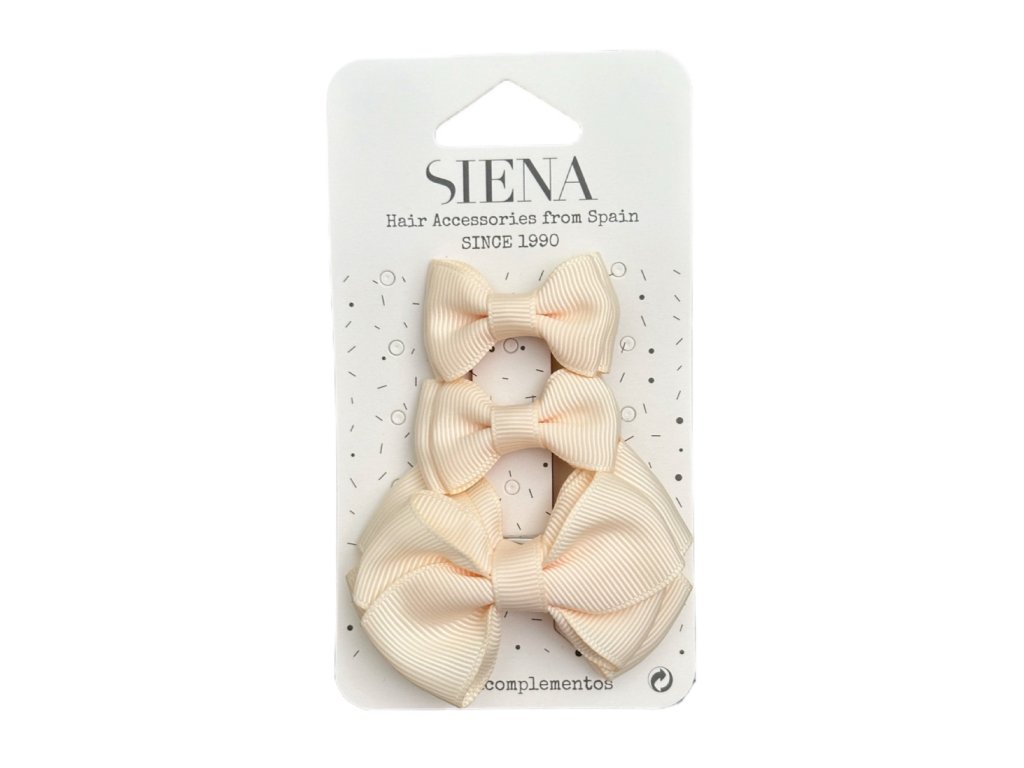 3 dielny set sponiek od španielskej značky SIENA. Mašličky majú klip s malými zúbkami - ktorý zabezpečí že dobre držia.
