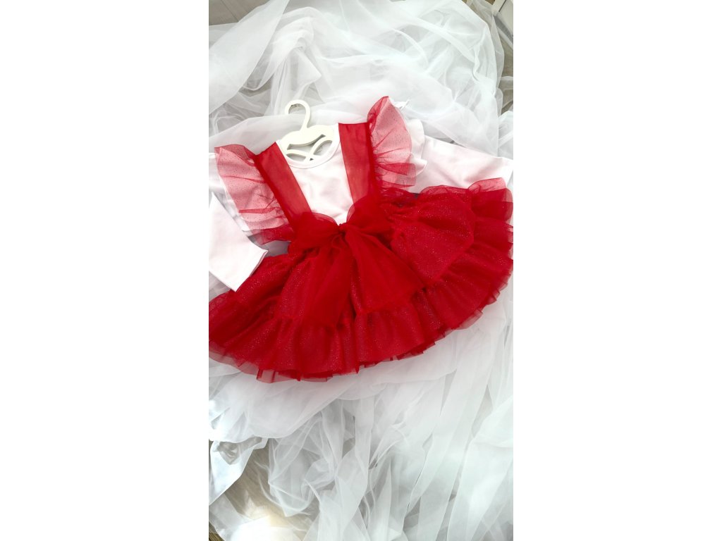 Základ sukničky je bohaté riasenie, v páse je gumička ktorá sa pekne prispôsobí obvodu. Traky sú zošité so sukničkou, dozdobené volánikmi tak, aby spolu so sukničkou vytvárali neodolateľný kúsok. Prednú časť dozdobuje v páse mašlička. Traky sa dajú posúvať na požadovanú dĺžku. Suknička sa predáva samostatne, bez volánikového topu. Top/Body s volánikmi a čelenku je možné dokúpiť samostatne.