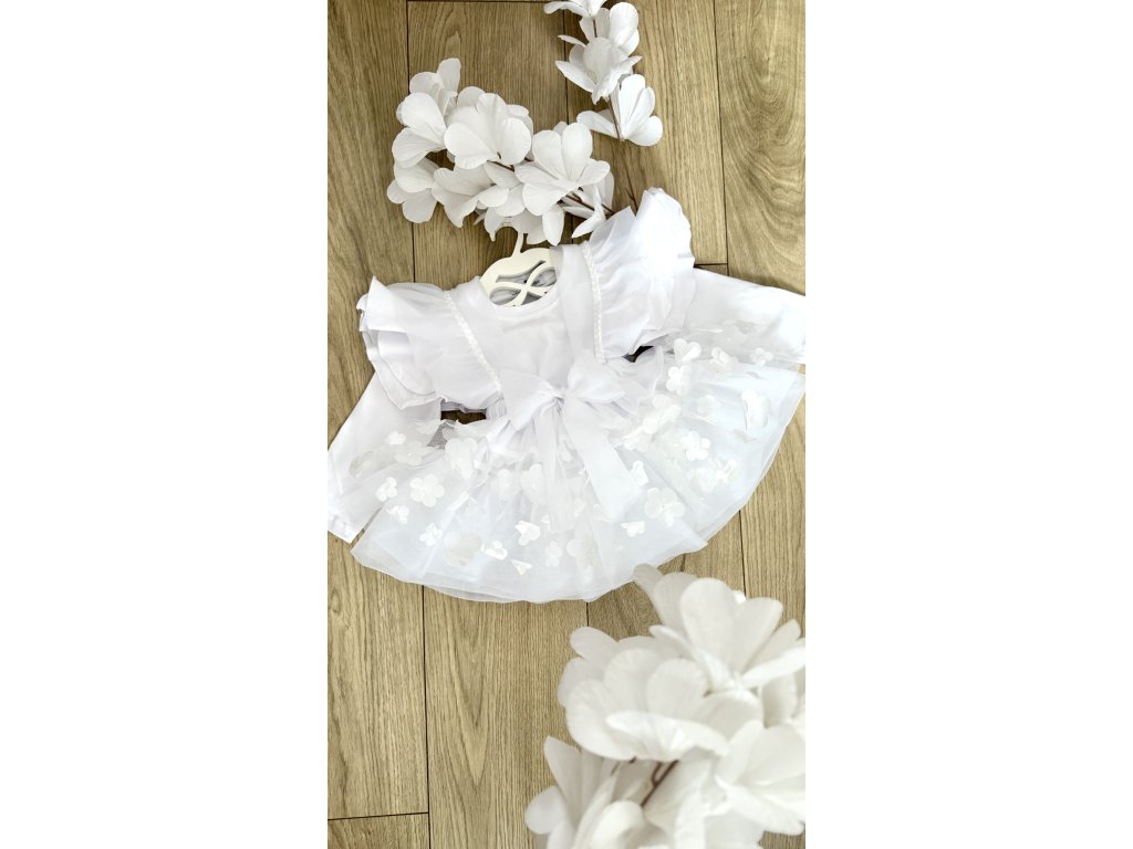 Predstavujeme Vám novinku od značky Bellarco, model Flower v bielej farbe. Táto suknička je krásnym spojením hladkého podkladu s vrchnou časťou s 3D kvietkovou aplikáciou. Na trakoch je po dlžke ozdobný lem.  Suknička s bohatým riasením a volánovými trakmi je krásny kúsok vhodný na akúkoľvek príležitosť.