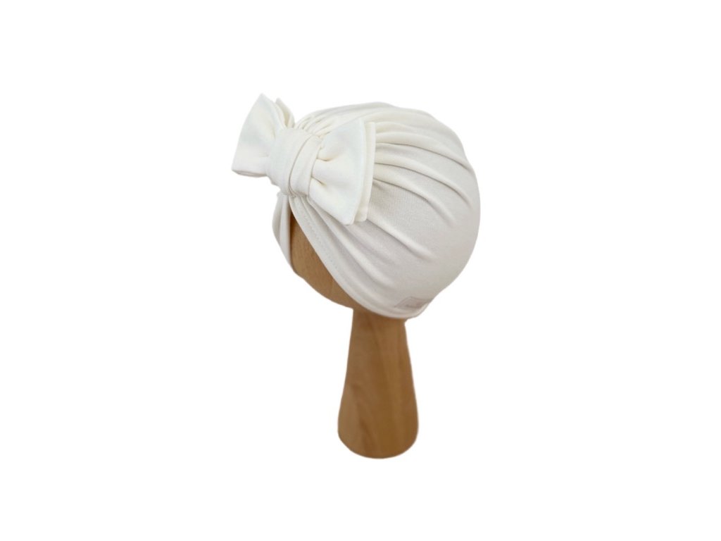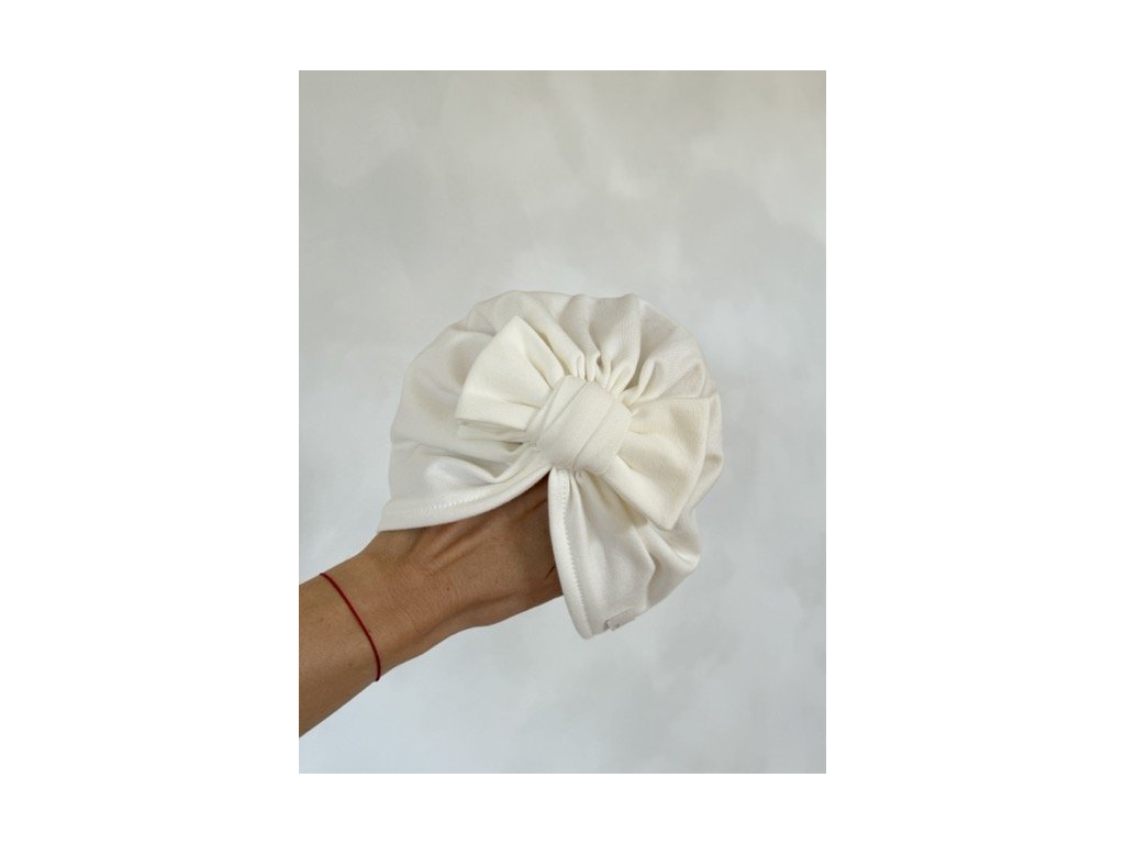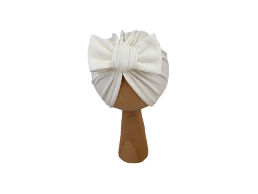 Turban s dvojitou mašličkou bavlna ecru jemná krémová