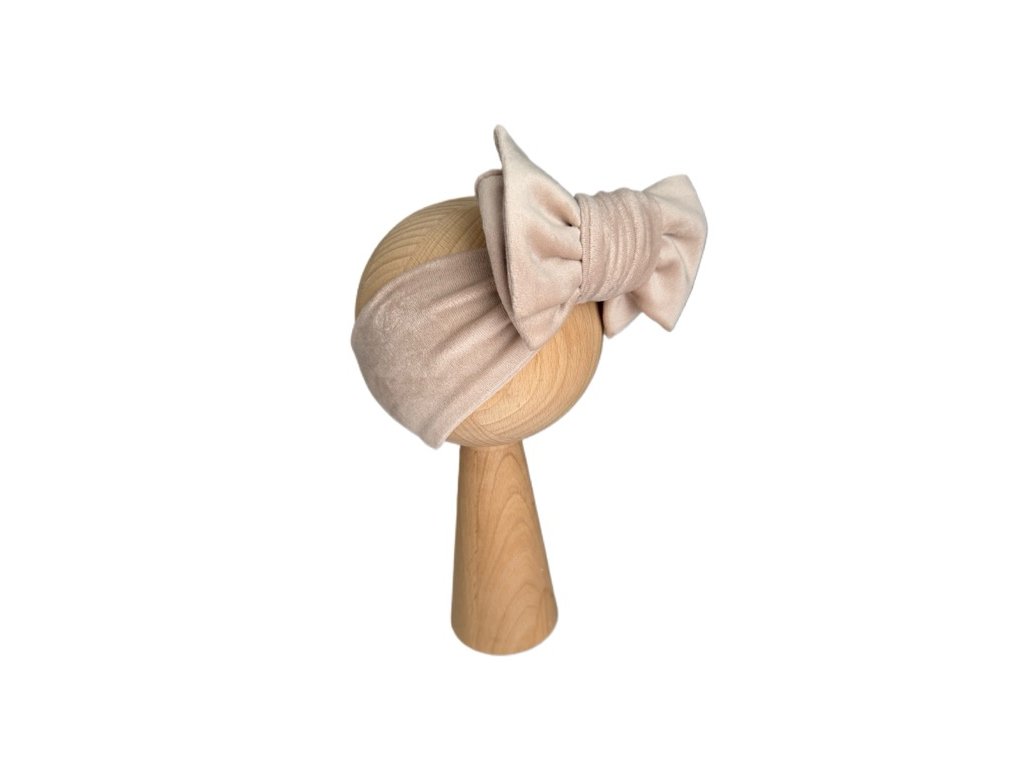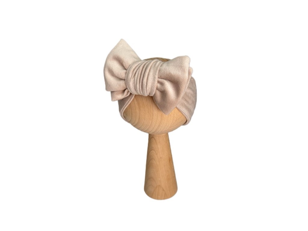 Velúrová jesenná čelenka s veľkou mašlou pieskovo béžová